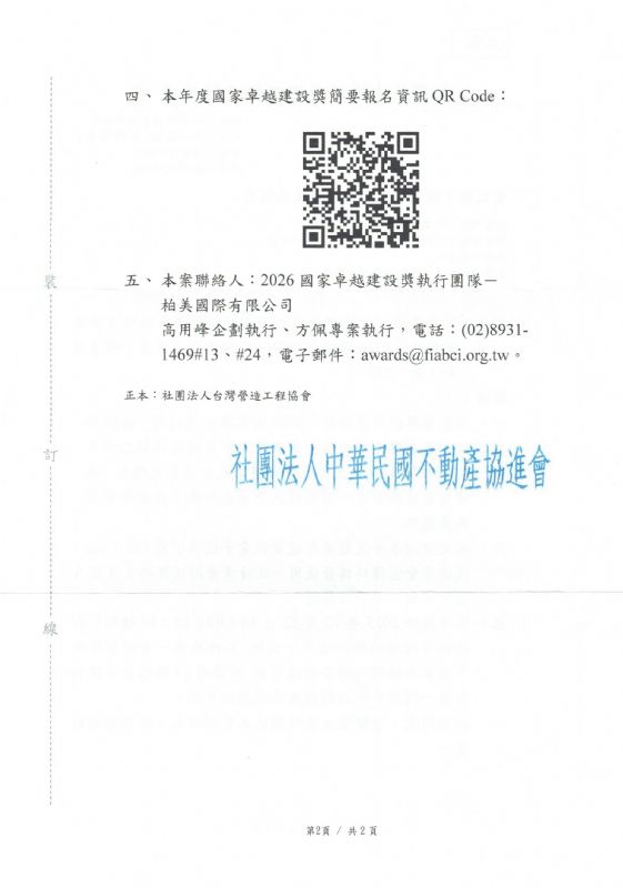 2026國家卓越建設獎作品報名表單:https://fiabci.org.tw/taiwan-awards/2026awards-submit/